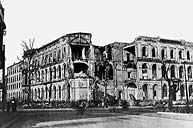 Eine der ersten Sanierungsmaßnahmen war die Öffnung dieser Arkaden und die Freilegung der ummauerten Steinsäulen. So ist heute der Lichthof räumlich wieder erlebbar. Auch die stark korrodierte Eisenkonstruktion der Lichthofüberdachung ist inzwischen in ihrer ursprünglichen Form rekonstruiert. Die Freilegung des eindrucksvollen Treppenhauses stellte dessen Grundform wieder her. Der in Gestalt und Architektur ansprechende und repräsentative Altbau nimmt den Leitungsbereich des Ministeriums für Verkehr auf.